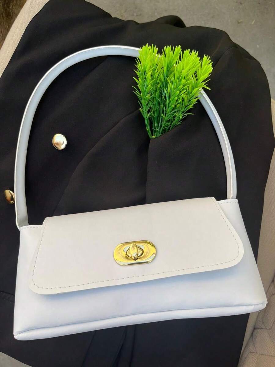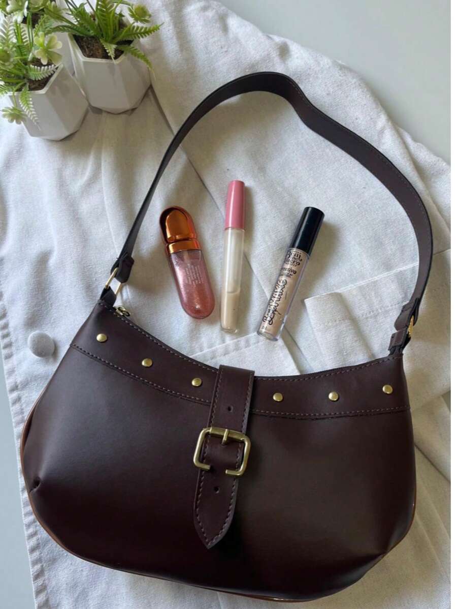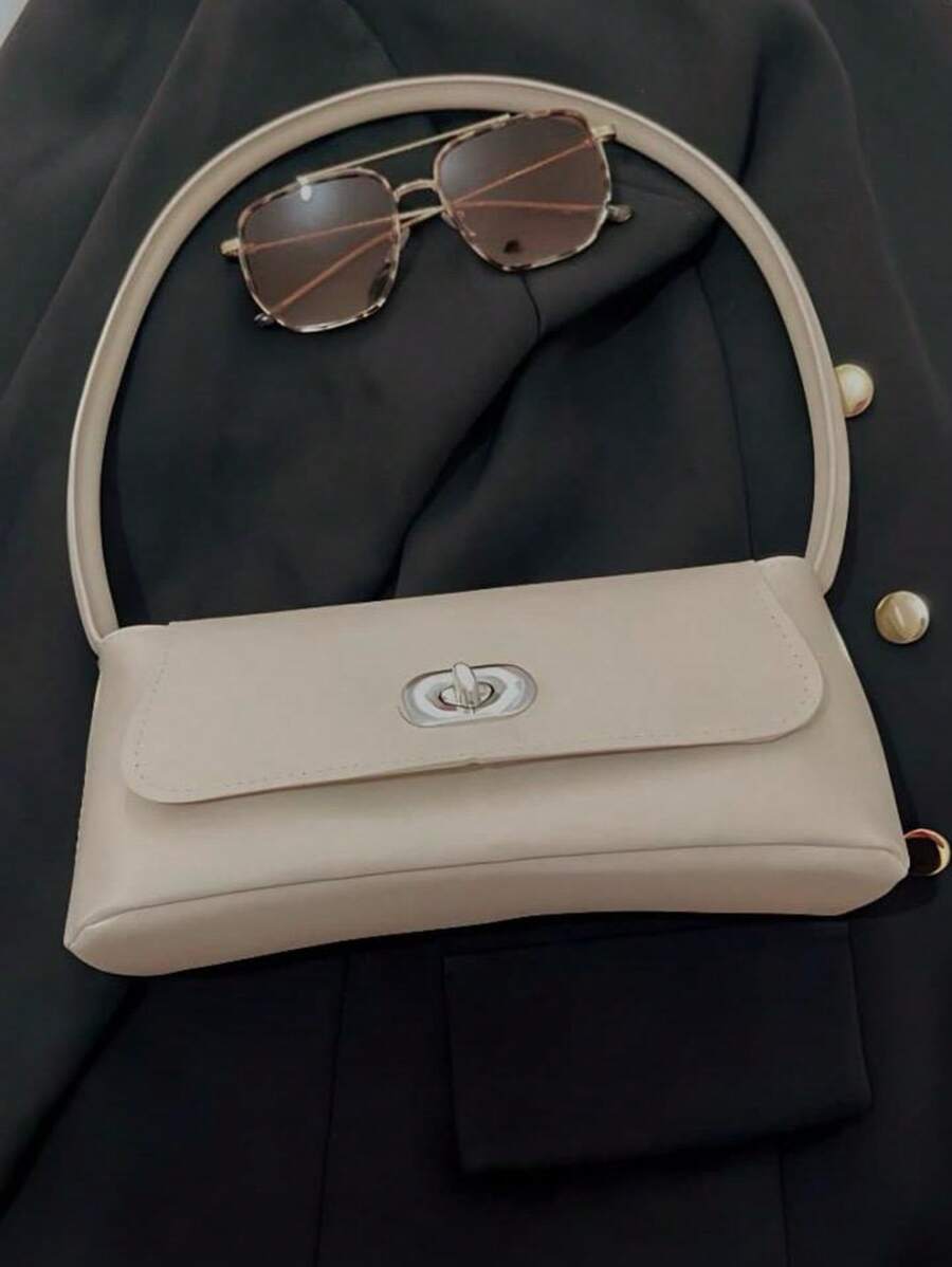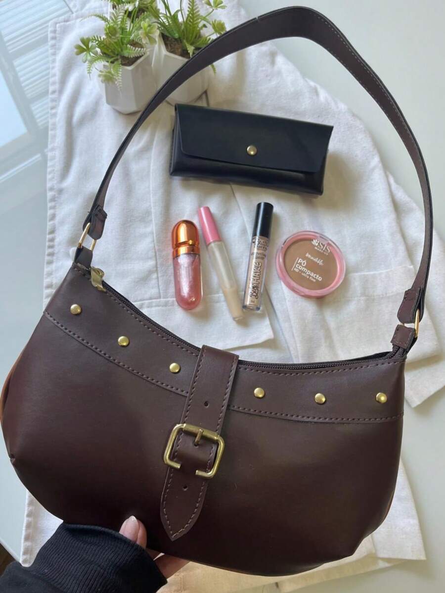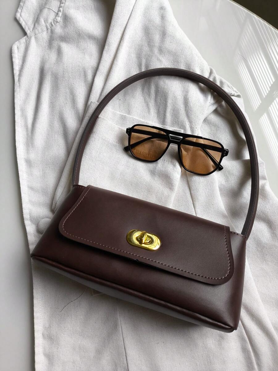 Bolsa Baguete Luxuosa Feminina Café com Fecho Dourado Giratório – Lançamento 1