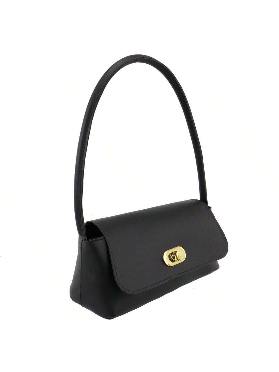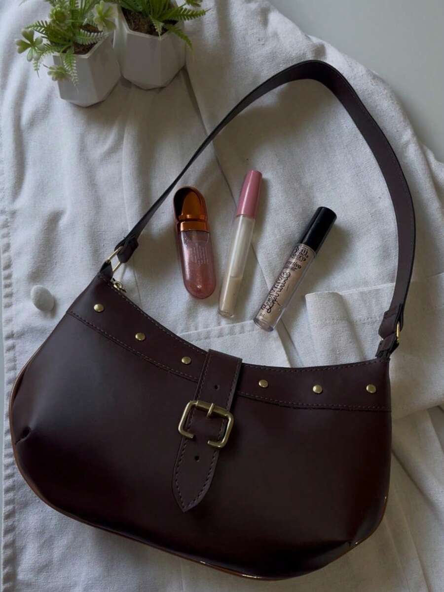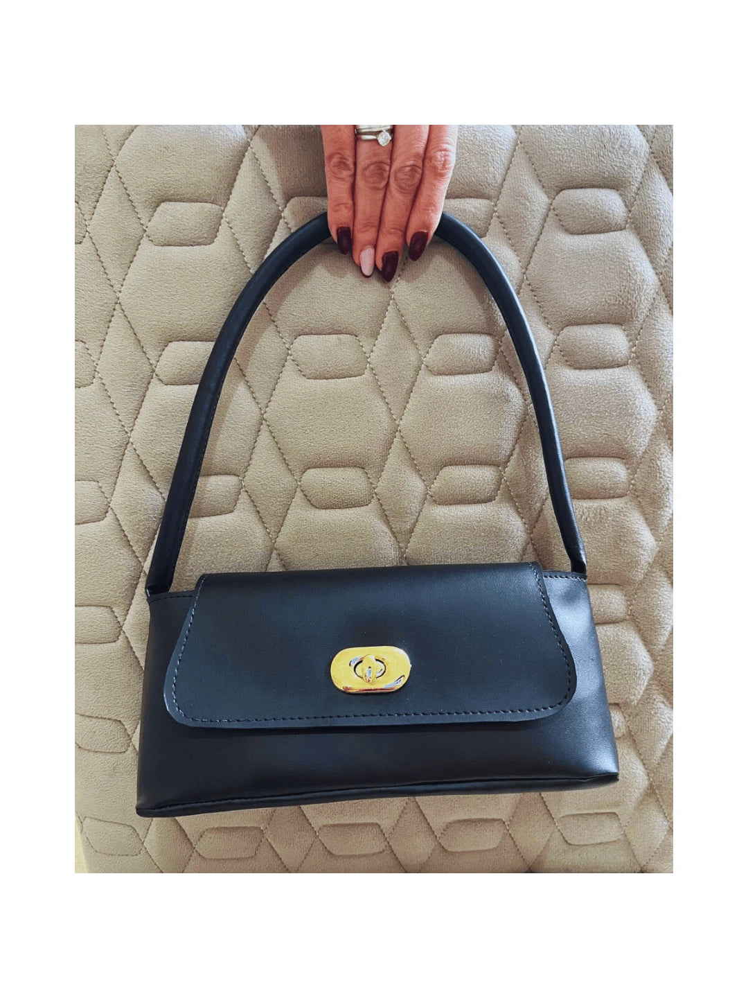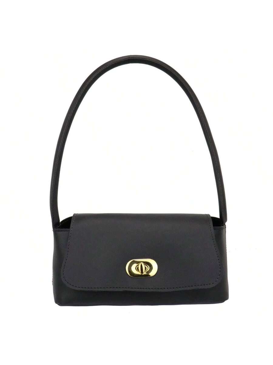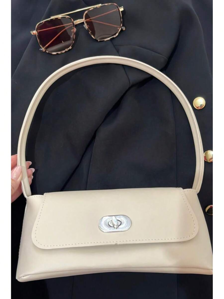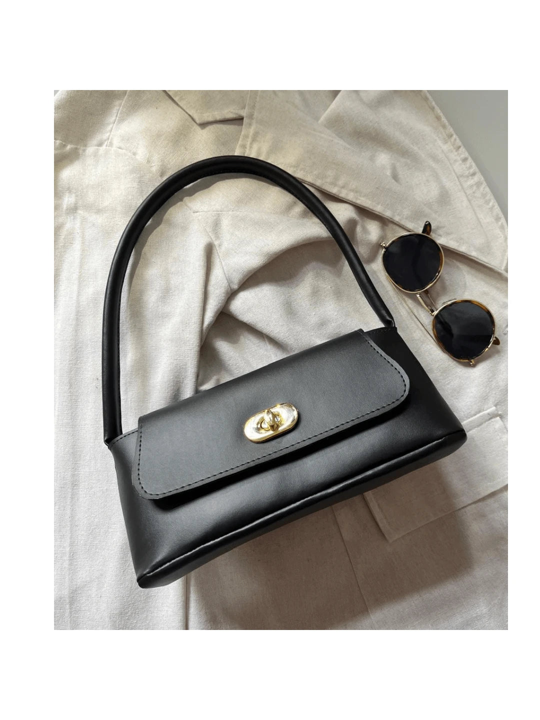 Bolsa Baguete Luxuosa Feminina Café com Fecho Dourado Giratório – Lançamento 1