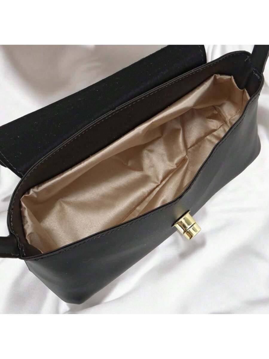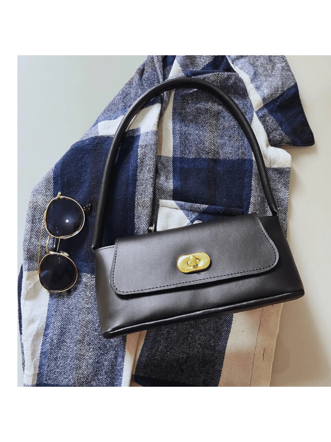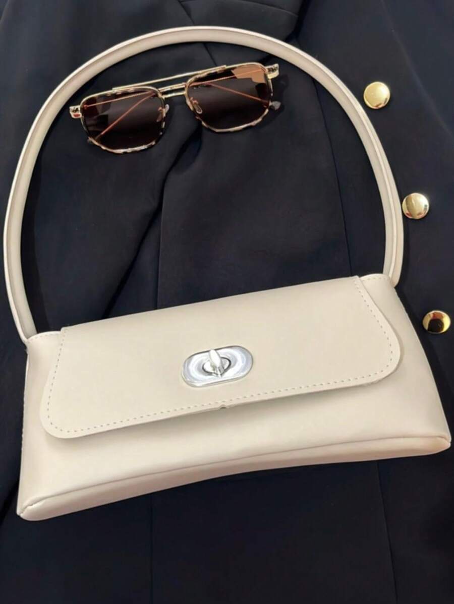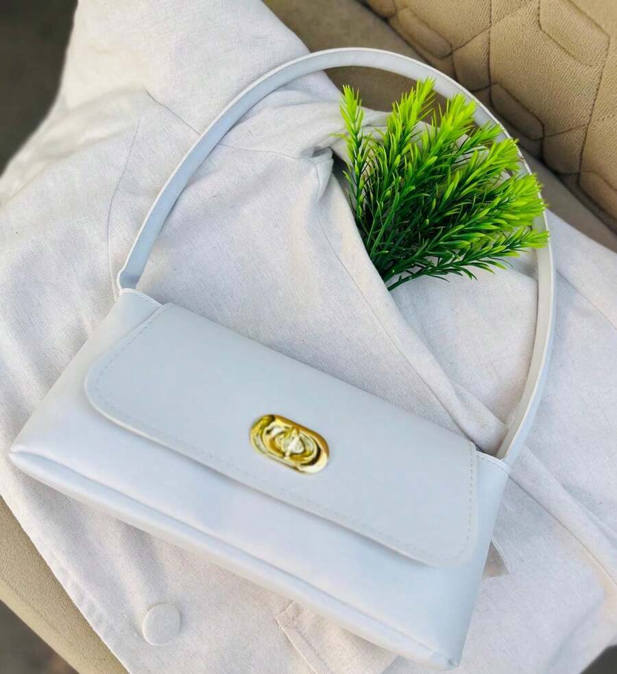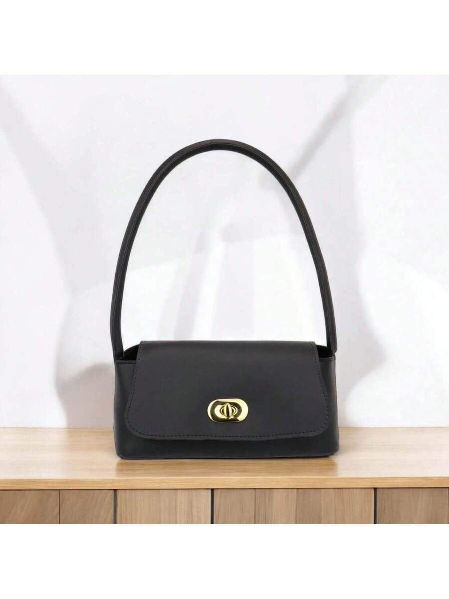 Bolsa Baguete Luxuosa Feminina Café com Fecho Dourado Giratório – Lançamento 1