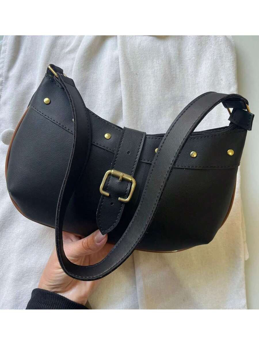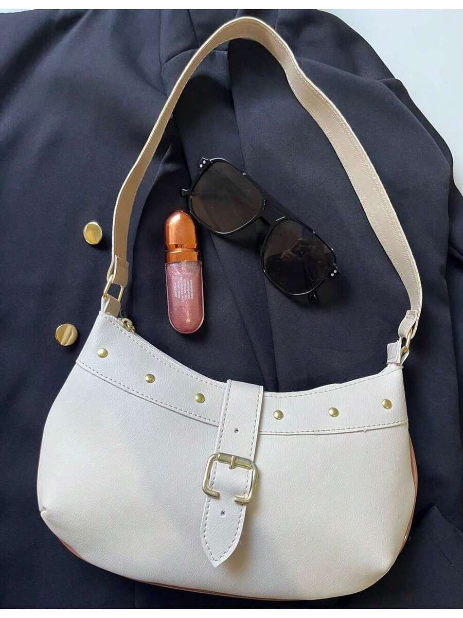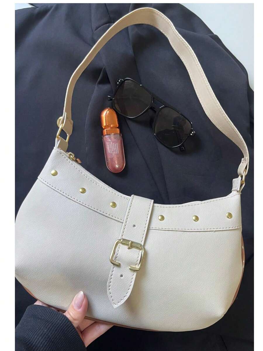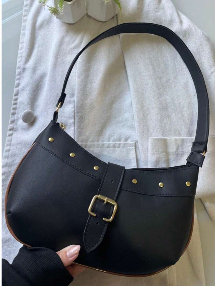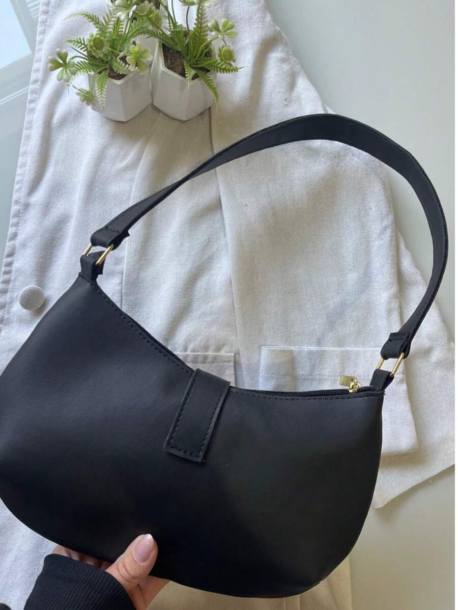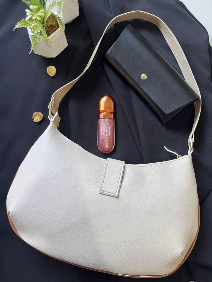 Bolsa Baguete Luxuosa Feminina Café com Fecho Dourado Giratório – Lançamento 1