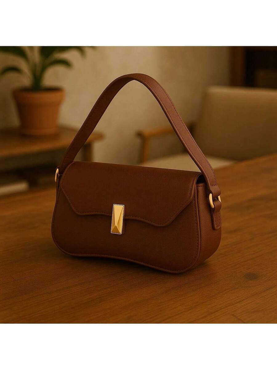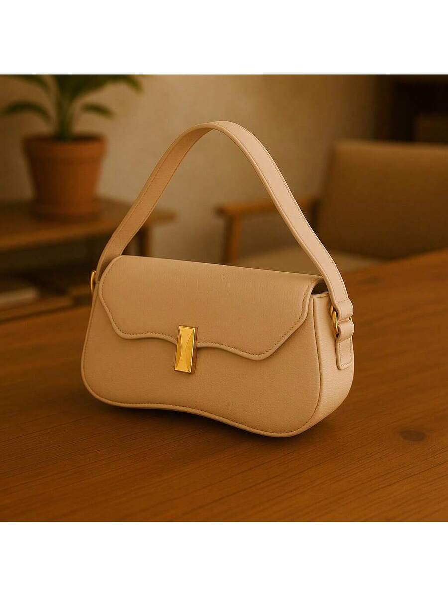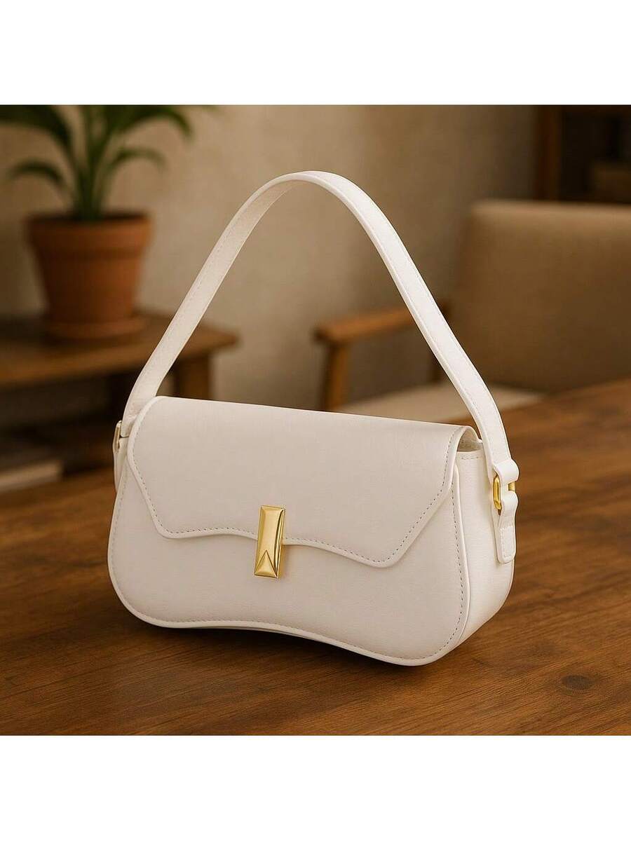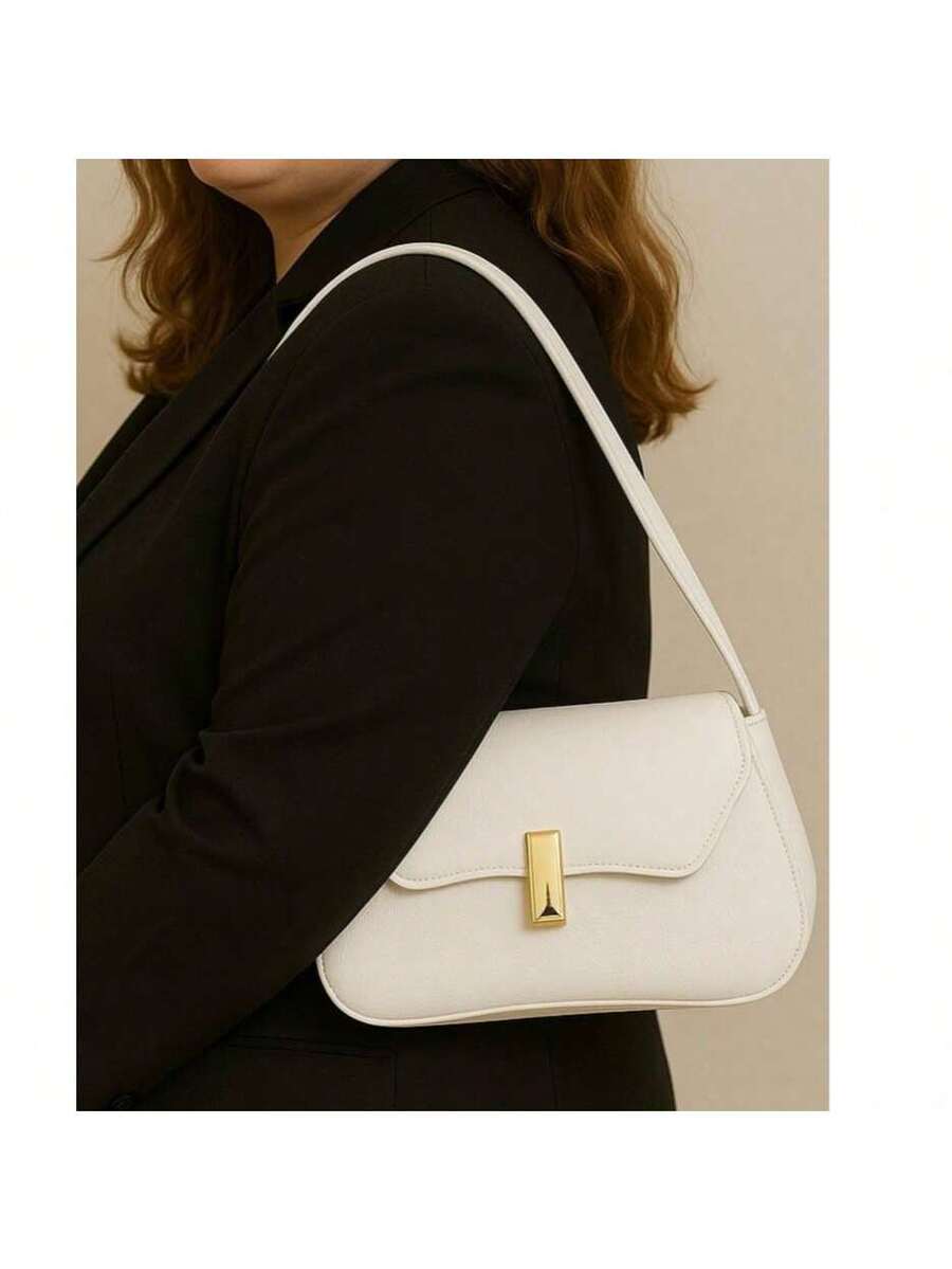 Bolsa Feminina de Ombro Branca Estruturada com Fecho Dourado Elegante 1
