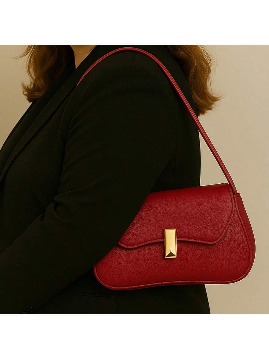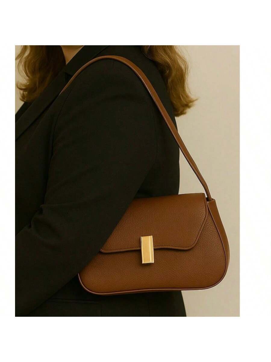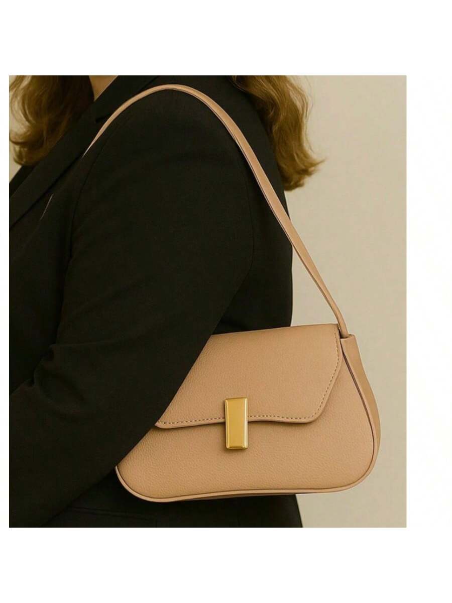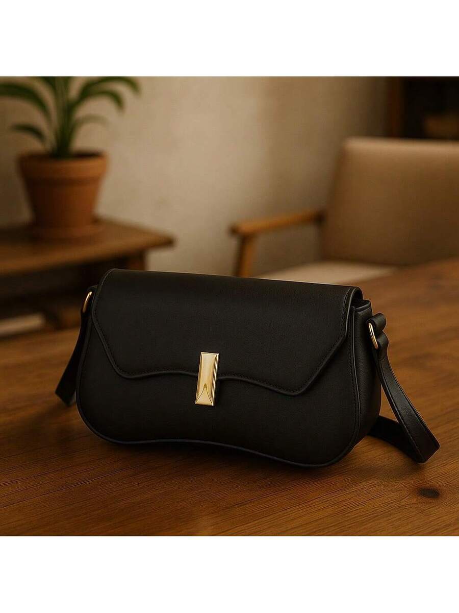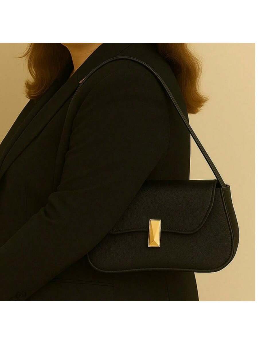 Bolsa Feminina de Ombro Branca Estruturada com Fecho Dourado Elegante 1