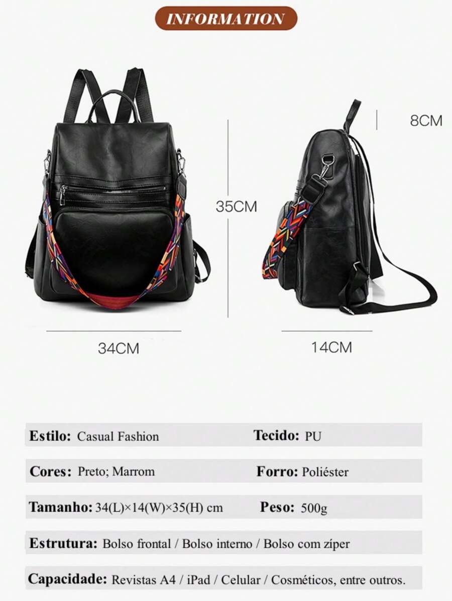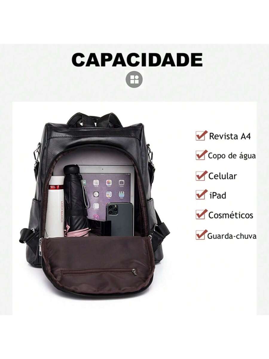 Mochila Feminina Premium de Couro Sintético Luxo 3 em 1 Casual e Elegante