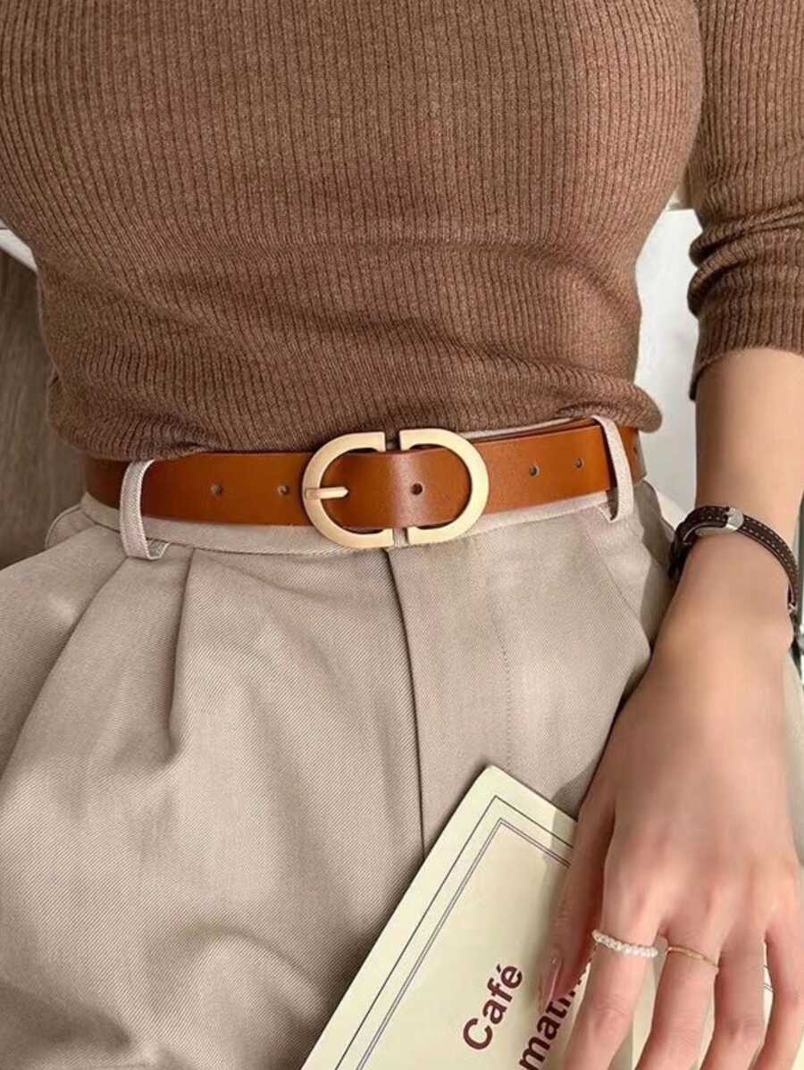 Cinto Feminino Casual com Fivela Redonda Elegante