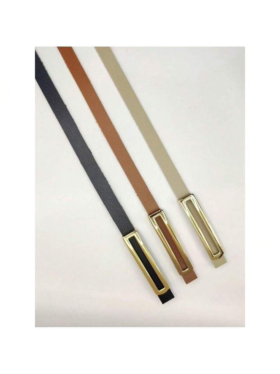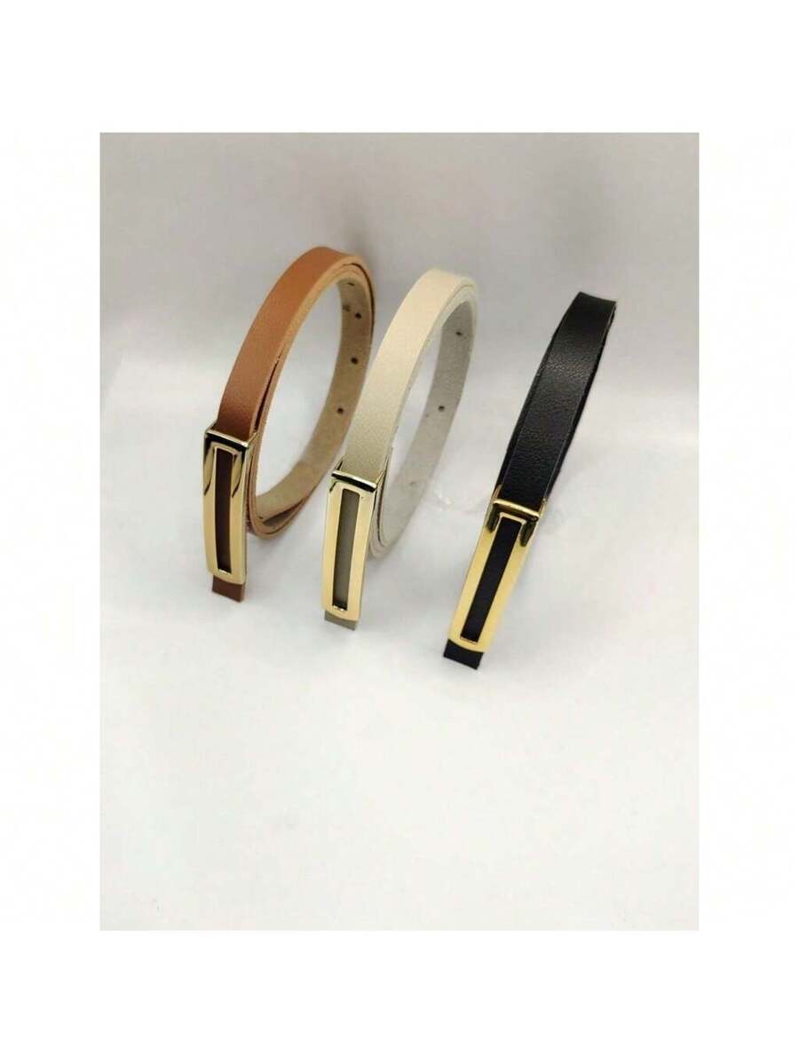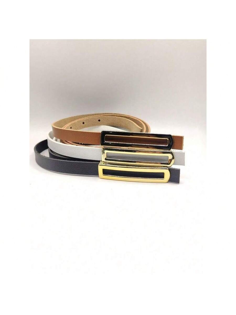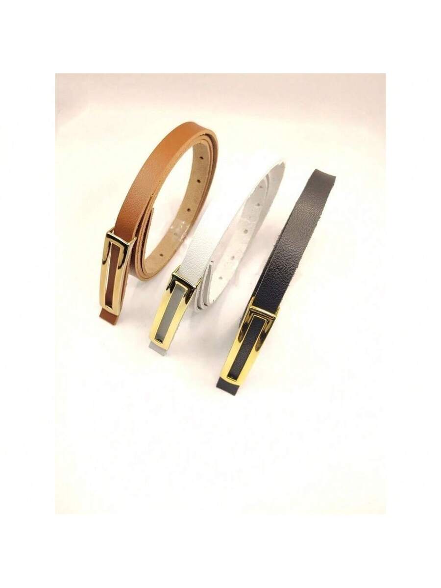 Kit 3 Cintos Femininos Finos Elegantes com Fivela Dourada – Preto, Branco e Marrom