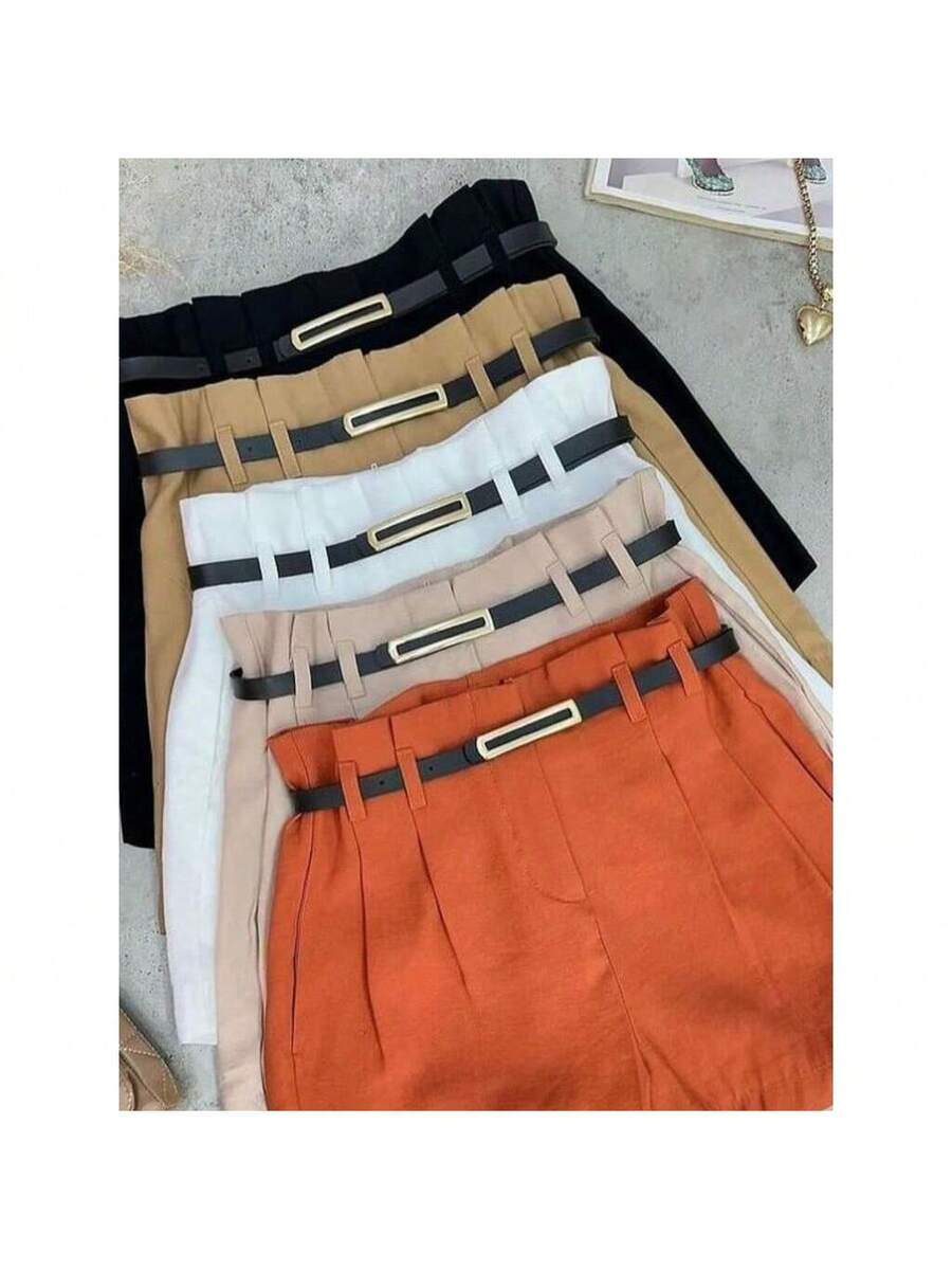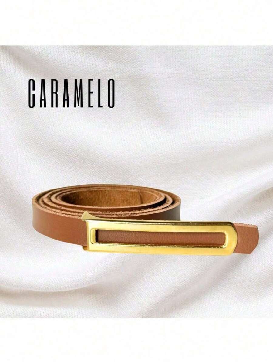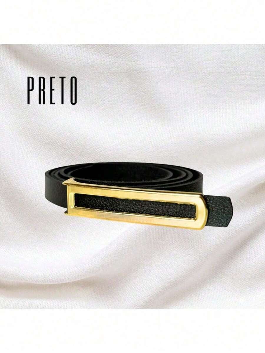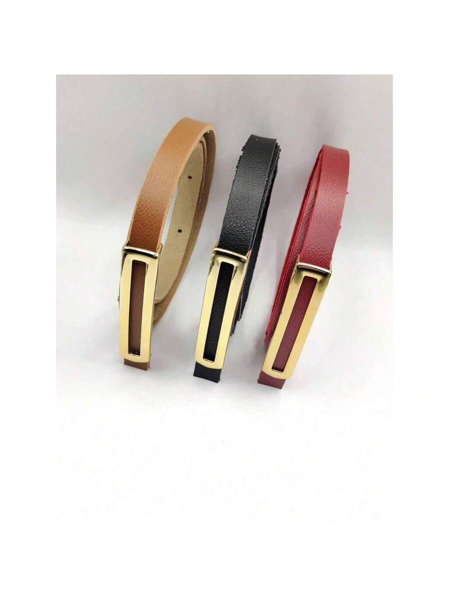 Kit 3 Cintos Femininos Finos Elegantes com Fivela Dourada – Preto, Branco e Marrom
