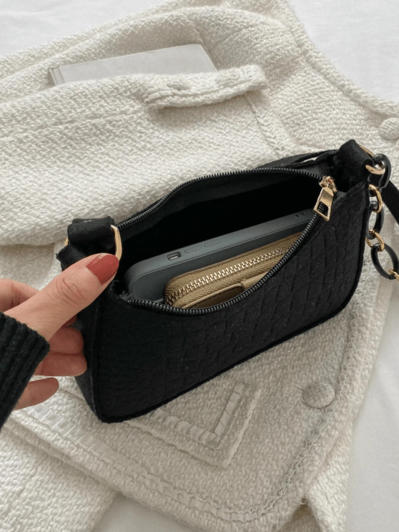 Bolsa Quadrada De Lã De Fibra No Estilo Coreano Para Mulheres 1