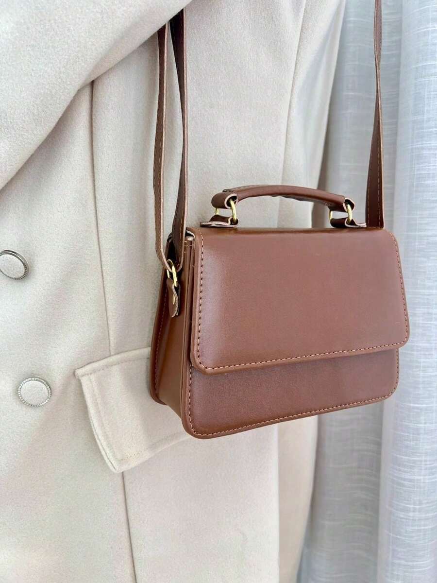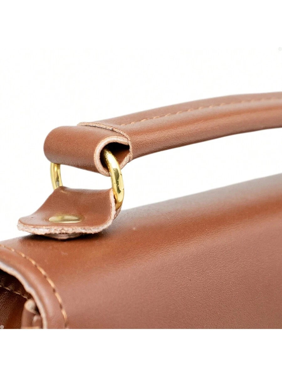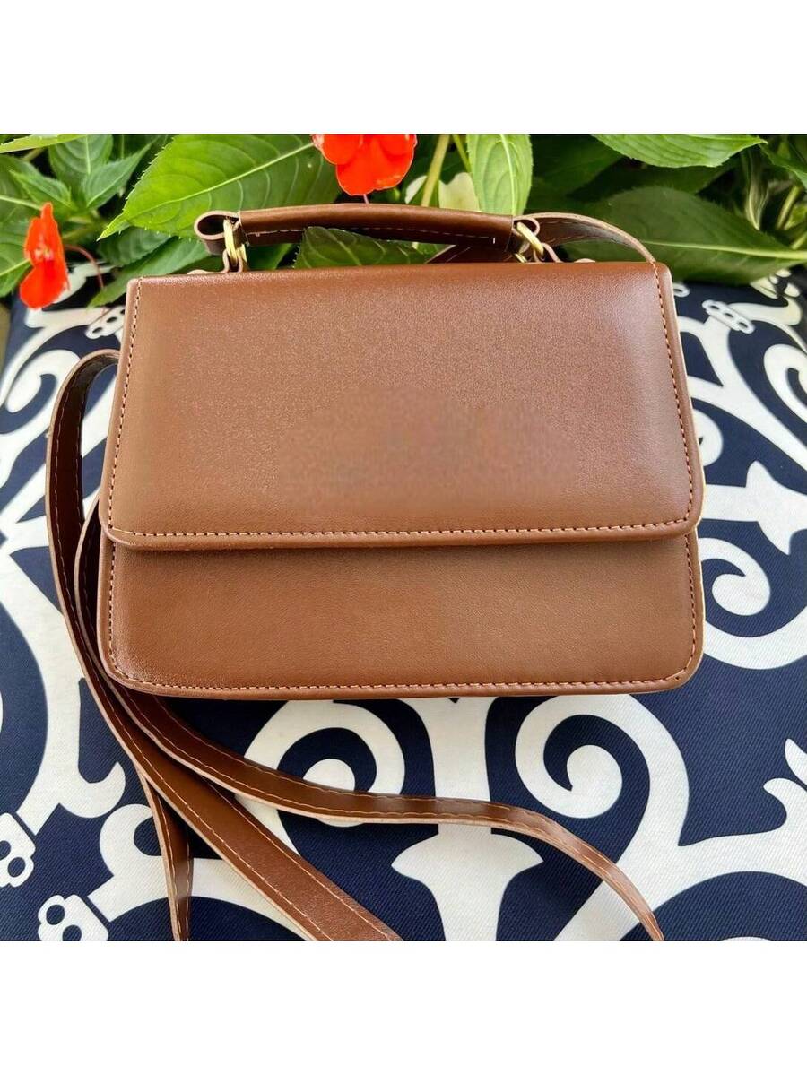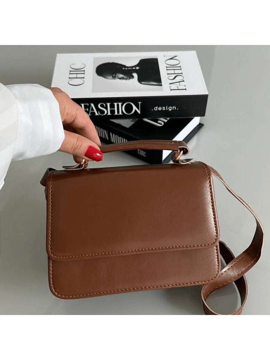 Bolsa Feminina Estruturada de Ombro Couro Sintético Marrom Clássica 1
