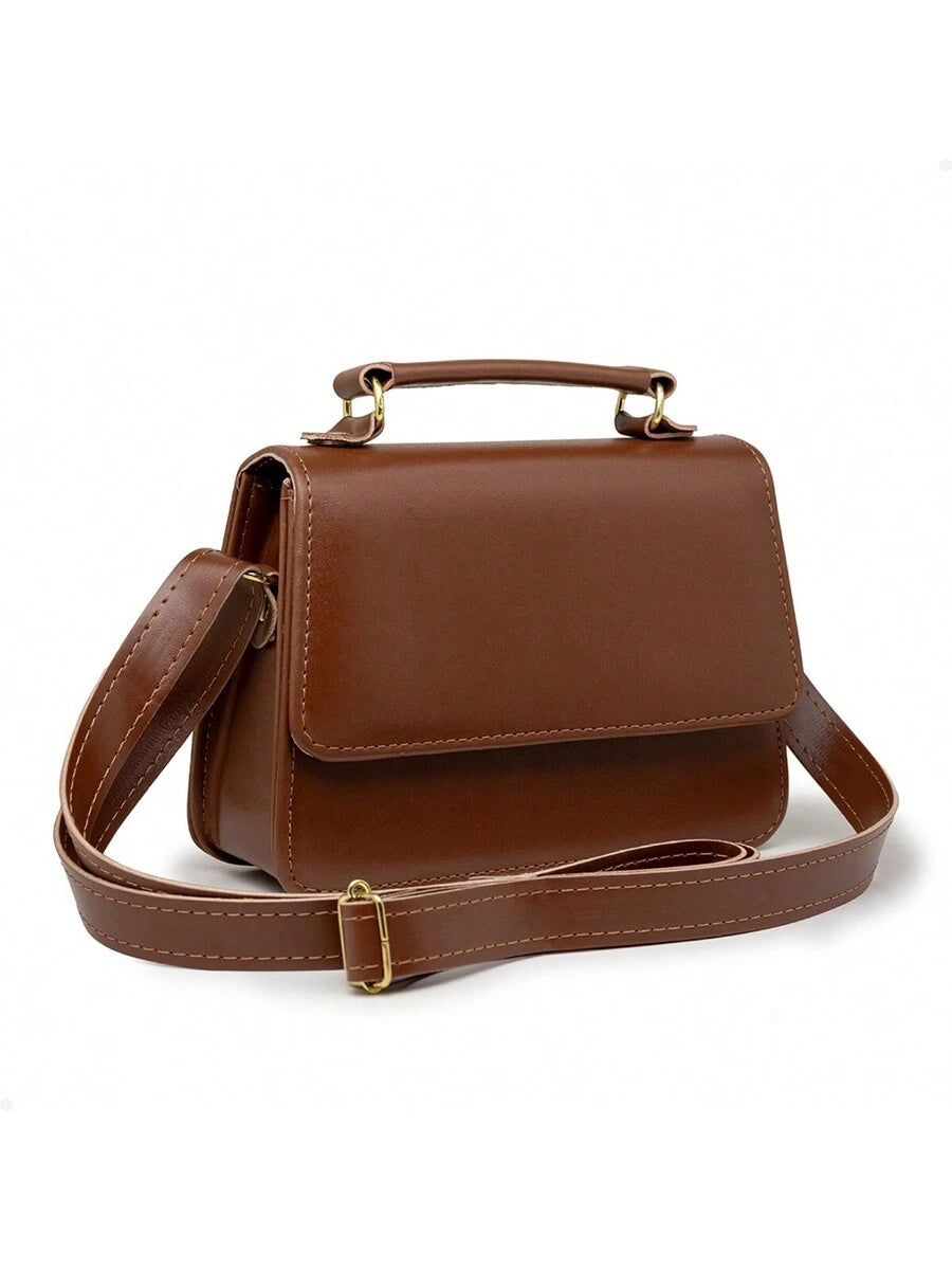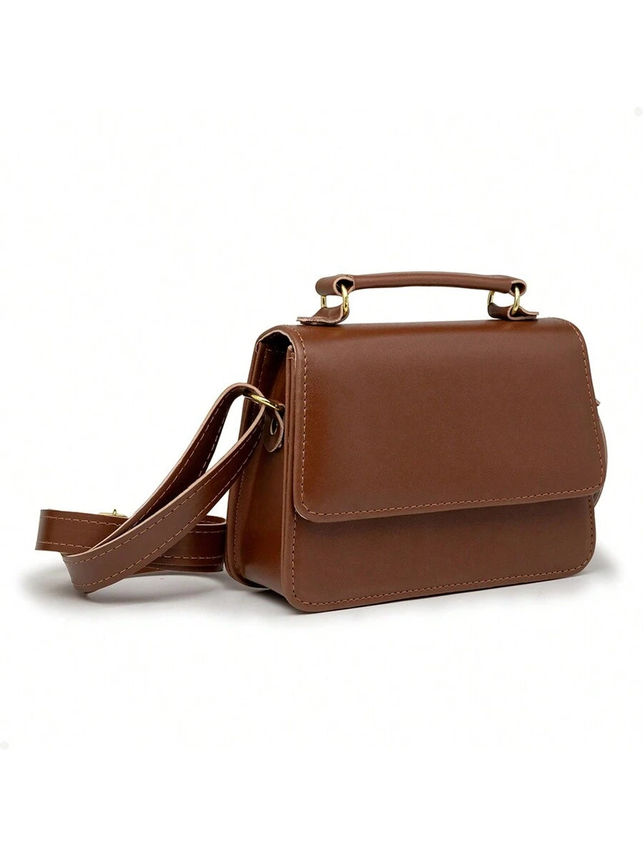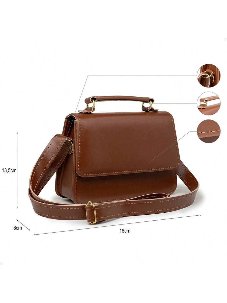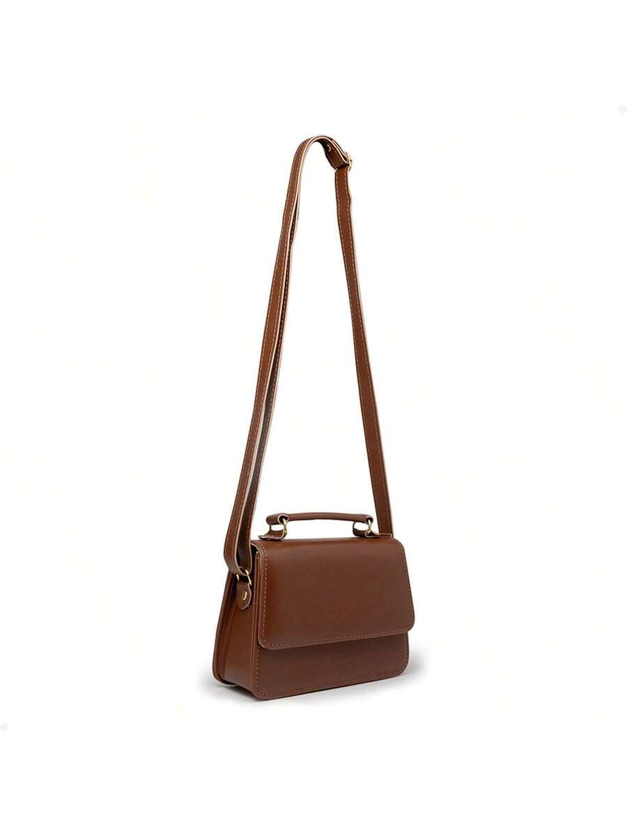 Bolsa Feminina Estruturada de Ombro Couro Sintético Marrom Clássica 1